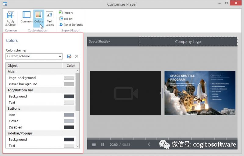 如果要对单选按钮和复选框控件使用自定义填充颜色,请在播放器颜色设置中选择一种新颜色。此外,您可以为热点标记选择自定义填充颜色。