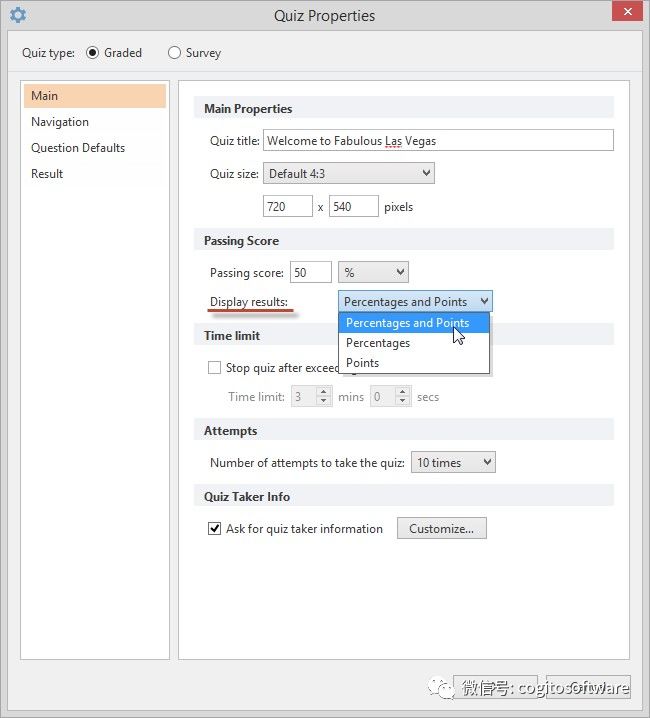 使用此新选项,您可以选择在最终幻灯片上显示结果的方式:分数和/或百分比。