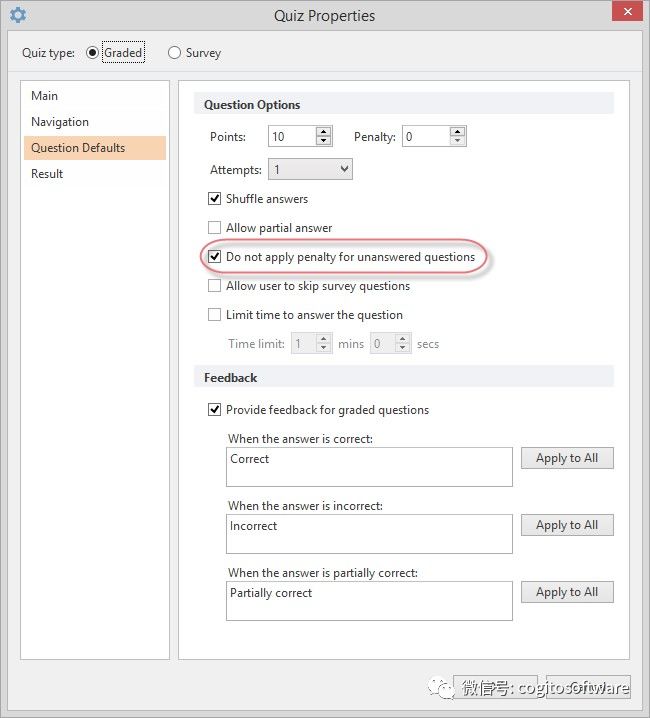 该选项的名称已经说的很明了。有未完成的问题不会被扣分。另一方面,如果是错误的答案将会被扣分。