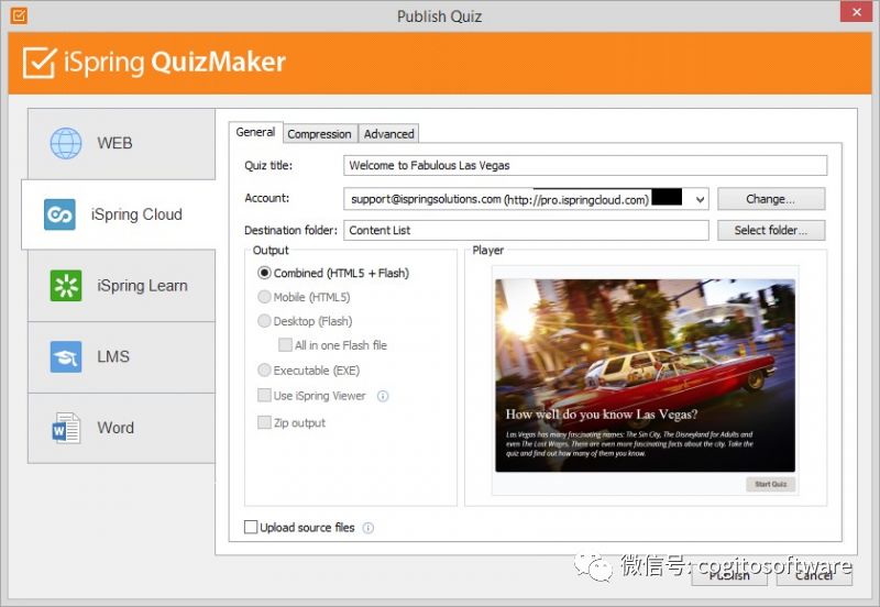 现在,您可以通过一键点击QuizMaker界面直接将您的测验发布到iSpring Cloud托管和共享平台!