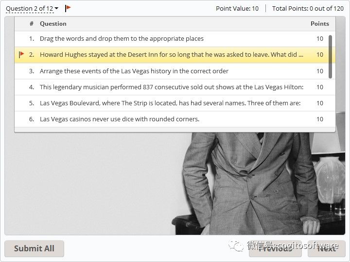 把测验问题放进书签之一新功能允许用户在进行测验时在问题列表中标记某些问题。将问题加为书签可能有几个原因。在提交整个测验之前,学生可能想回去核对一下答案。