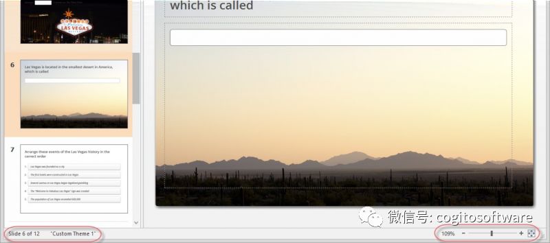 Quiz Maker Editor底部升级的状态栏显示有关所选幻灯片的基本信息。此外,您可以使用幻灯片浏览模式中的滑块放大和缩小幻灯片区域。