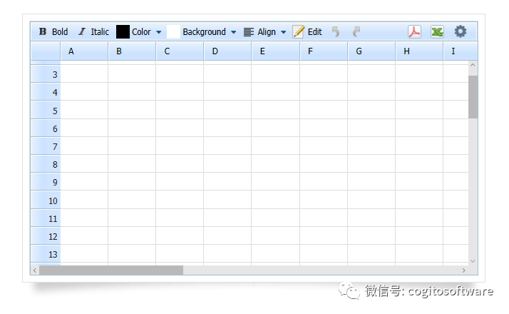 dhtmlxSpreadsheet是以dhtmlxGrid JavaScript组件为基础,支持显示和格式化表格数据的基本功能。提供基本类似于Excel的功能,它允许您在网页上的任意位置嵌入简单的电子表格,以熟悉的方式对表格数据进行处理。